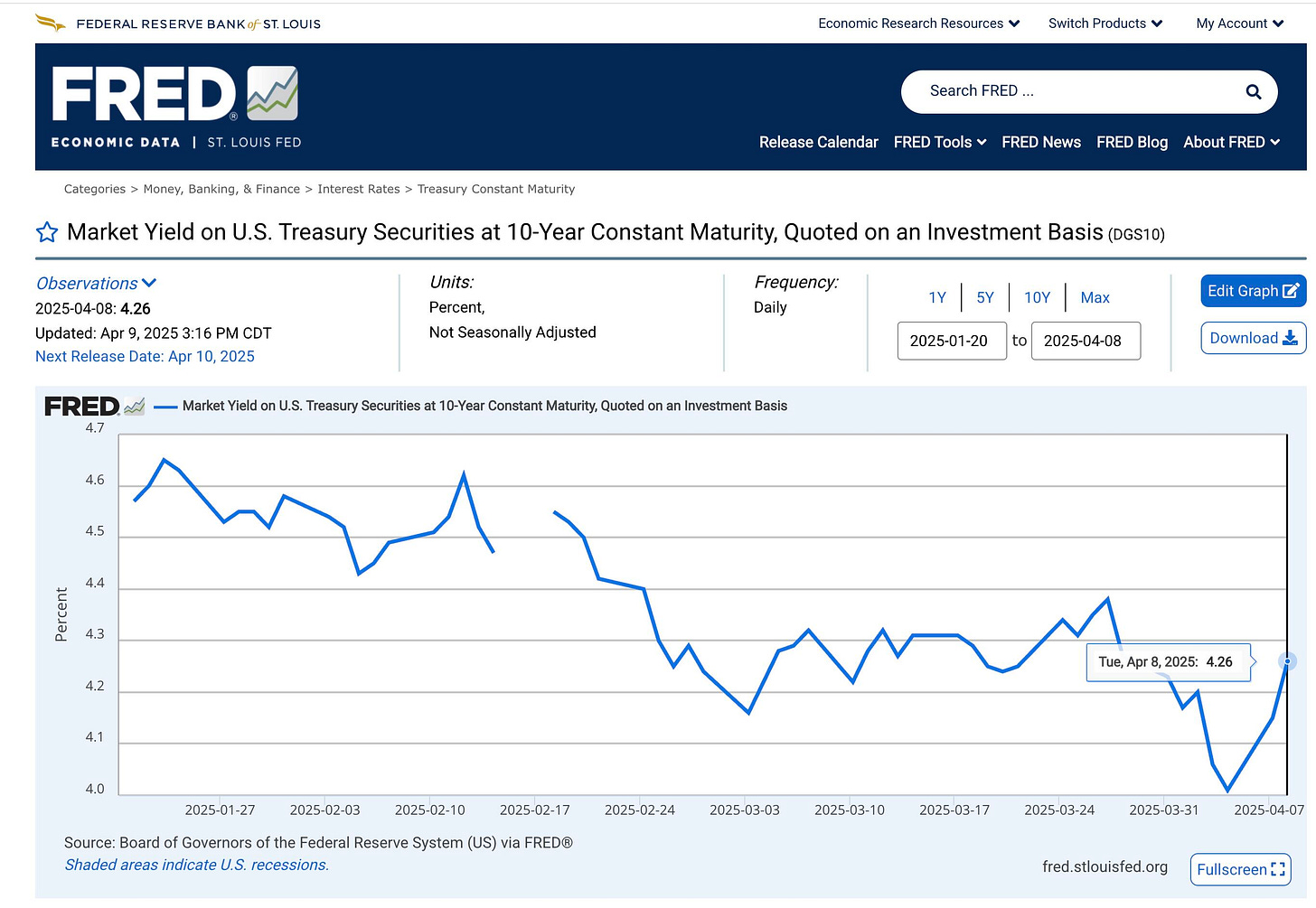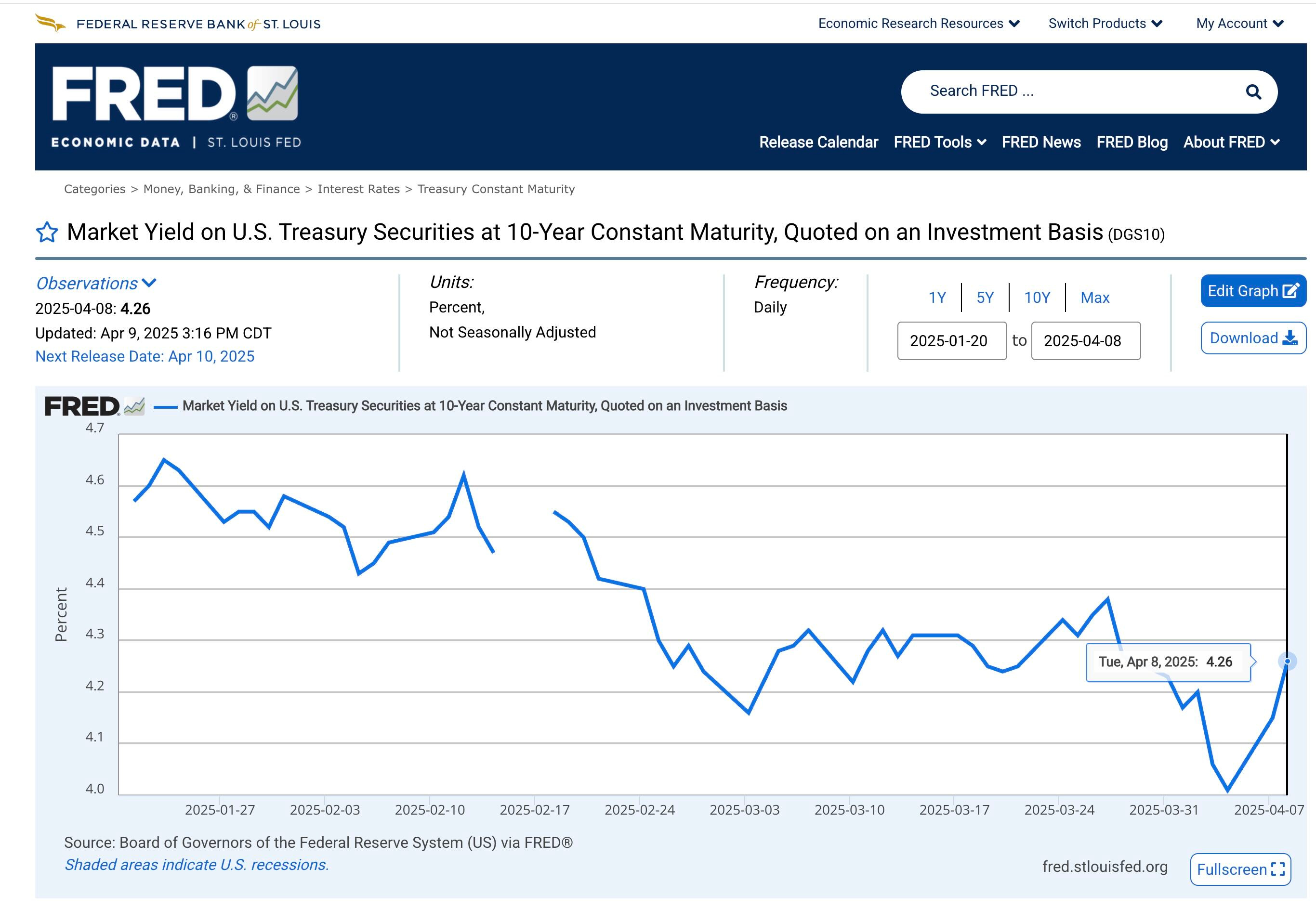 주식시장이나 소비자 물가 말고 트럼프 대통령을 실제로 불안하게 한 숫자로 꼽히는 게 바로 10년 만기 국채 수익률이다.